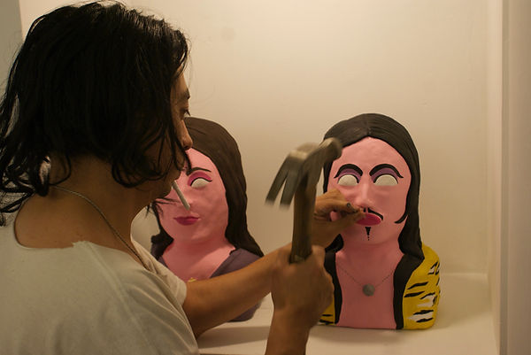 Artista multidisciplinario enfocado en el tema de los procesos destructivos como medio de creación su obra posee características rituales,cargada muchas veces de religiosidad y una poderosa línea estética, sus imágenes aparentemente dulces y elegantes llevan consigo los más viscerales temas ,la fascinación por el drama humano y la doble animalidad que esto supone.